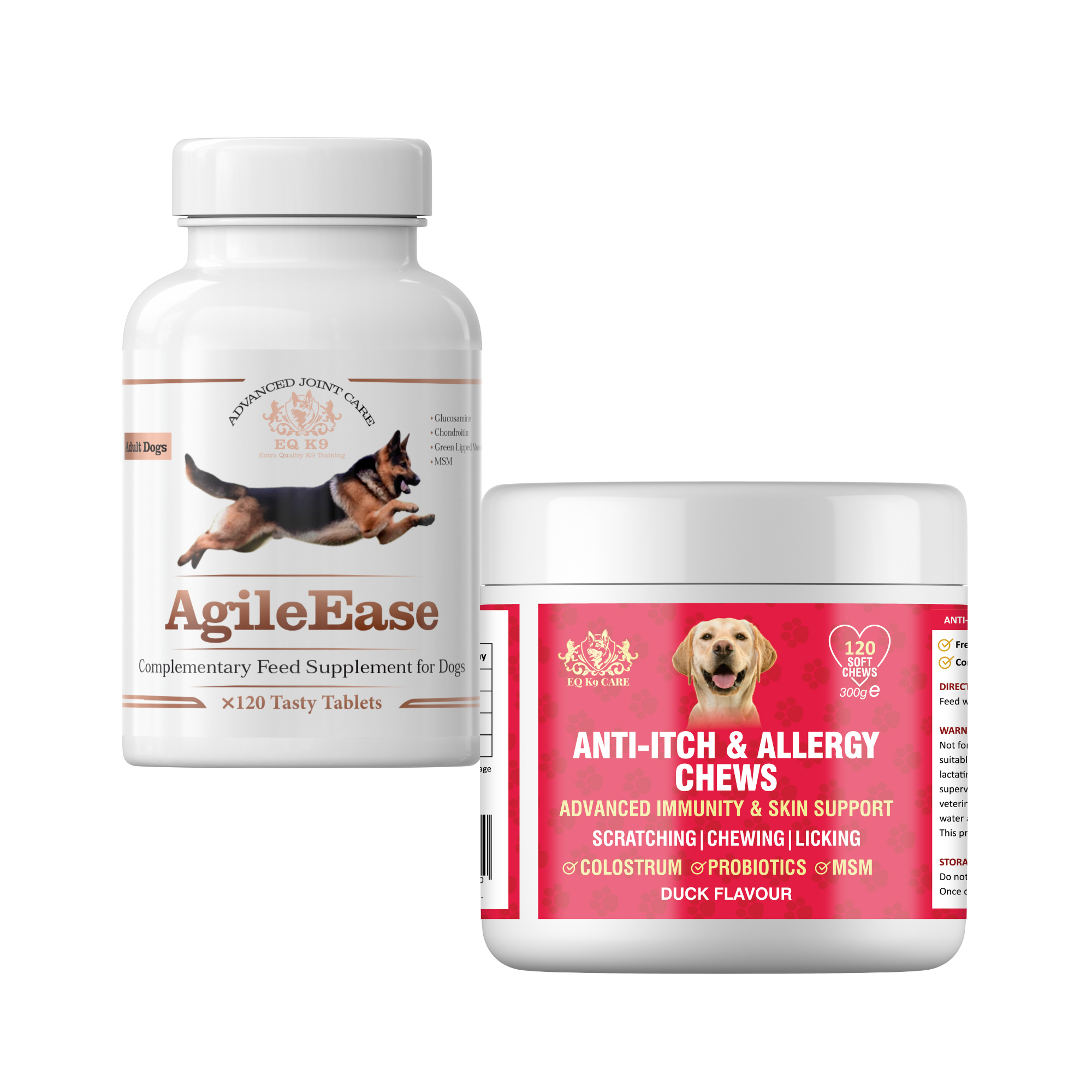 This bundle is ideal for active, working, adult, and senior dogs who experience skin sensitivity alongside joint stiffness or reduced mobility.